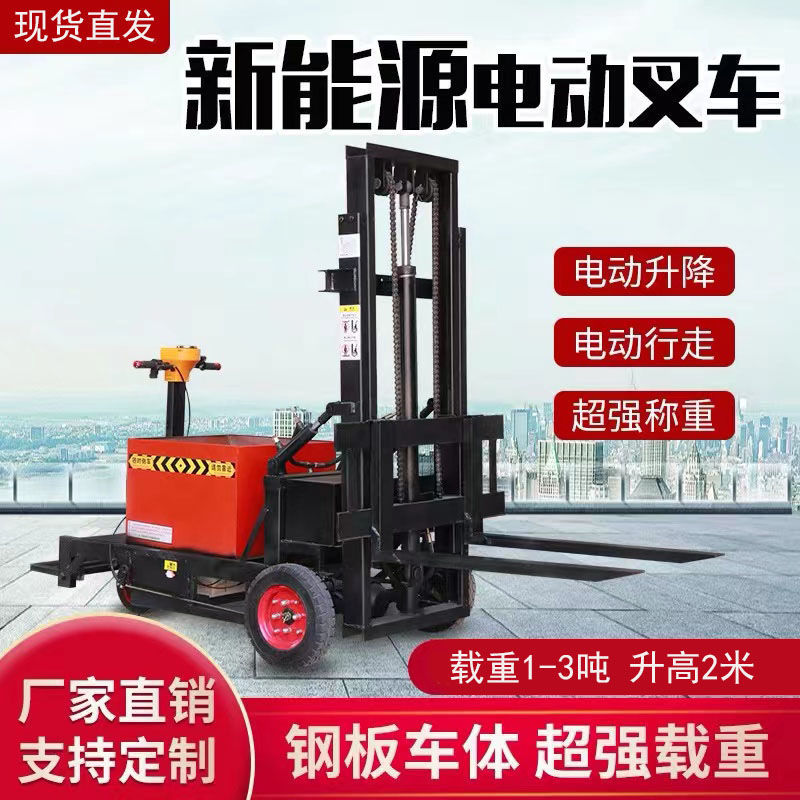 头份市小型电动叉车1吨站驾式2吨液压升高铲车全自动仓储堆高车